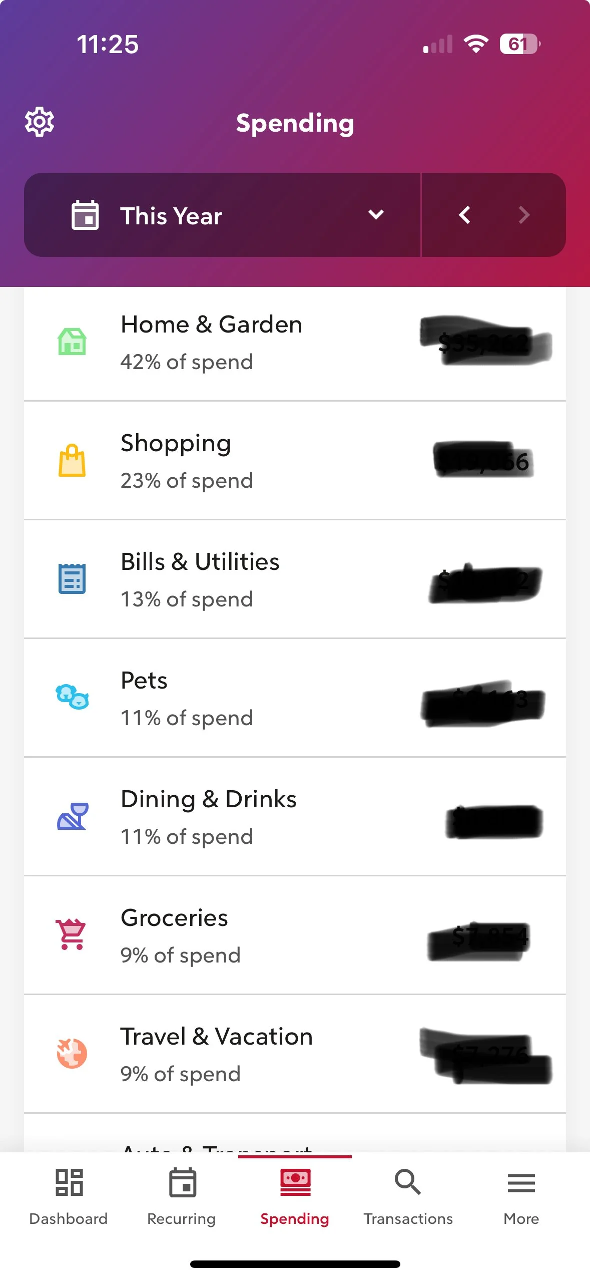 At the beginning of last year I signed up for a financial management app that allowed me to connect my bank accounts, credit cards, etc. to track my income & expenses. It automatically categorizes transactions, while also giving me a control by being able to change the categories, set rules, and split transaction. It has the typical spending and income categories, like Home & Garden, Shopping, Dinner & Drinks, Interest, etc. At the same time you can create a custom category to more accurately catalog your finances. Thanks to this app, in the end of the year I could easily understand where my money went. In 2025 I also plan on using it on a monthly basis, setting budgets and keeping track of my finances. In the past I often asked myself “Where the heck is my money going?!?!” and now I have taken out the guess work. Information is power and I plan to use it.